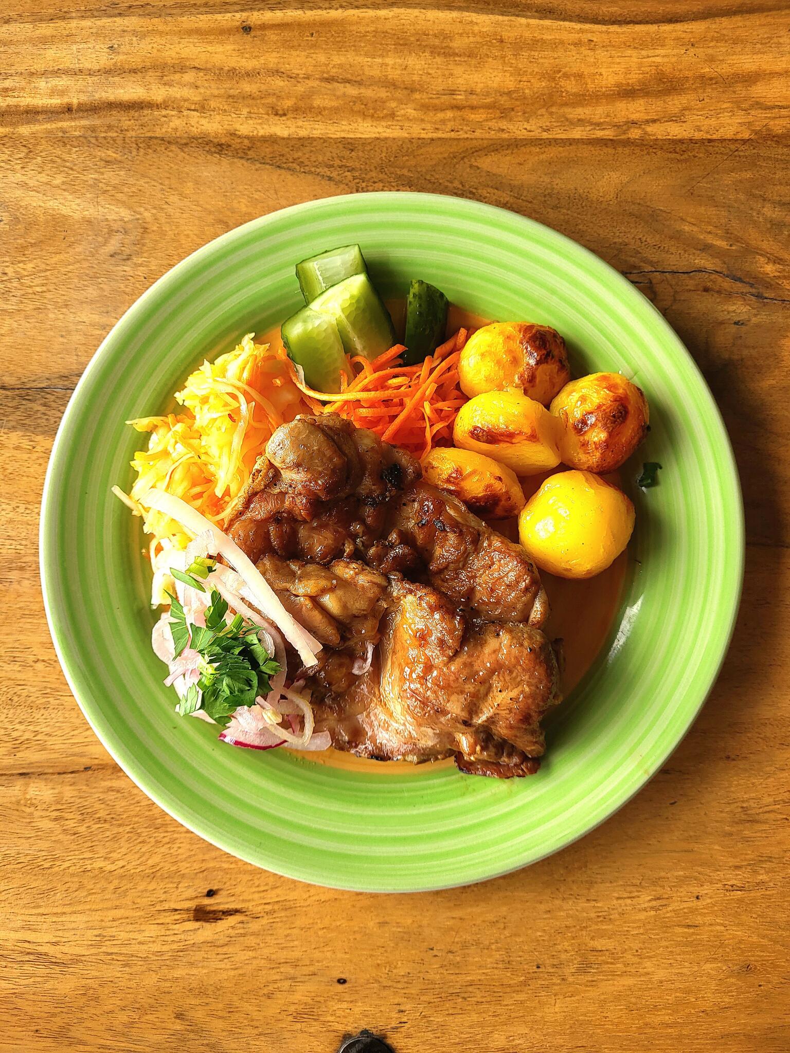 - Krõbedad ampsud ( Portmani juustupallid, kanatiivad, õllekoorikus sibularõngad, kevadrullid köögiviljaga, pelmeenid ja küüslaugu leivakesed ning vürtsikas chilli kaste ja hapukoore-küüslaugu dipikaste )